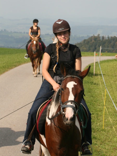 Evelyne Burri hat die drei Jährige Lehre zur Bereiterin (Pferdefachfrau) absolviert und leitet die Reitschule.