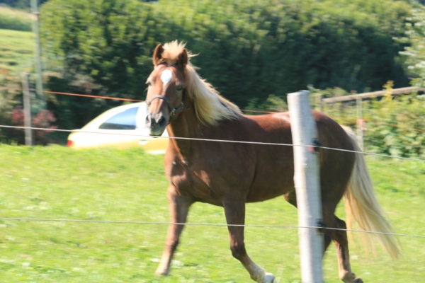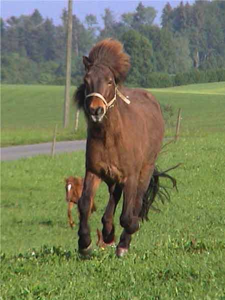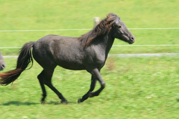 Reykja, die temperamentvolle Islandstute, im Galopp nach Hause.